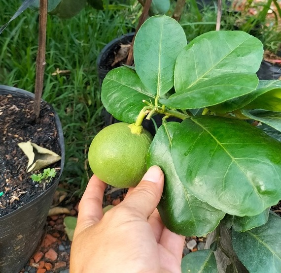 Cây bưởi da xanh trồng chậu có trái