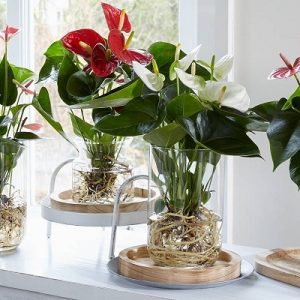 + Cây hồng môn thủy sinh bày trí trên bàn làm việc, cửa sổ vừa có công dụng trang trí vừa giúp lọc không khí, giàm căng thẳng mệt mỏi, ngăn chặn tia bức xạ